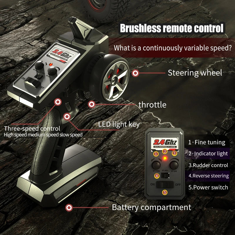 - 4-channel remote control with MODE2 delivers precise steering, throttle, braking, and mixed functions so you stay ahead on rough terrain.